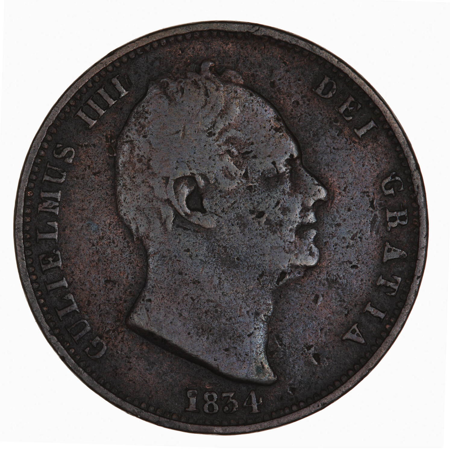 Bare head of the King facing right; around, GULIELMUS IIII DEI GRATIA; below, 1834