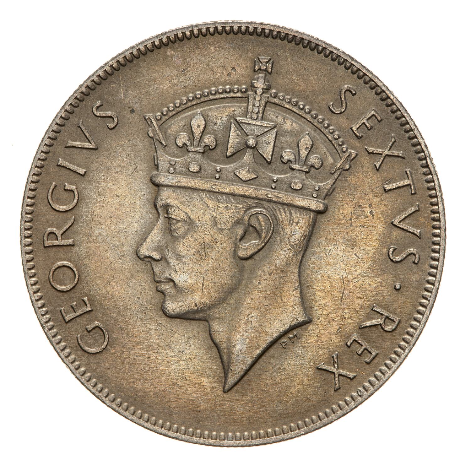 Crowned head of the king facing left; around, GEORGIVS SEXTVS REX; artist's initials, PM, below head