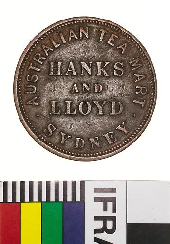 Obverse: HANKS AND LLOYD AUSTRALIAN TEA MART SYDNEY Reverse: TO COMMEMORATE THE OPENING OF THE SYDNEY RAILWAY 20TH. SEPTR. 1855