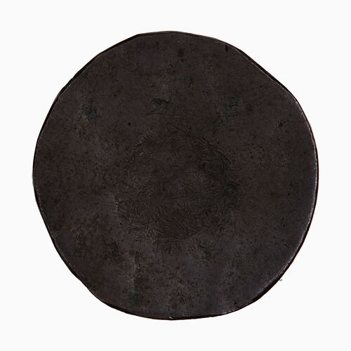 May have been struck at the Royal Mint, London during the reign of George III - then clipped and reverse removed or (more likely) may be an imitation farthing with no reverse.