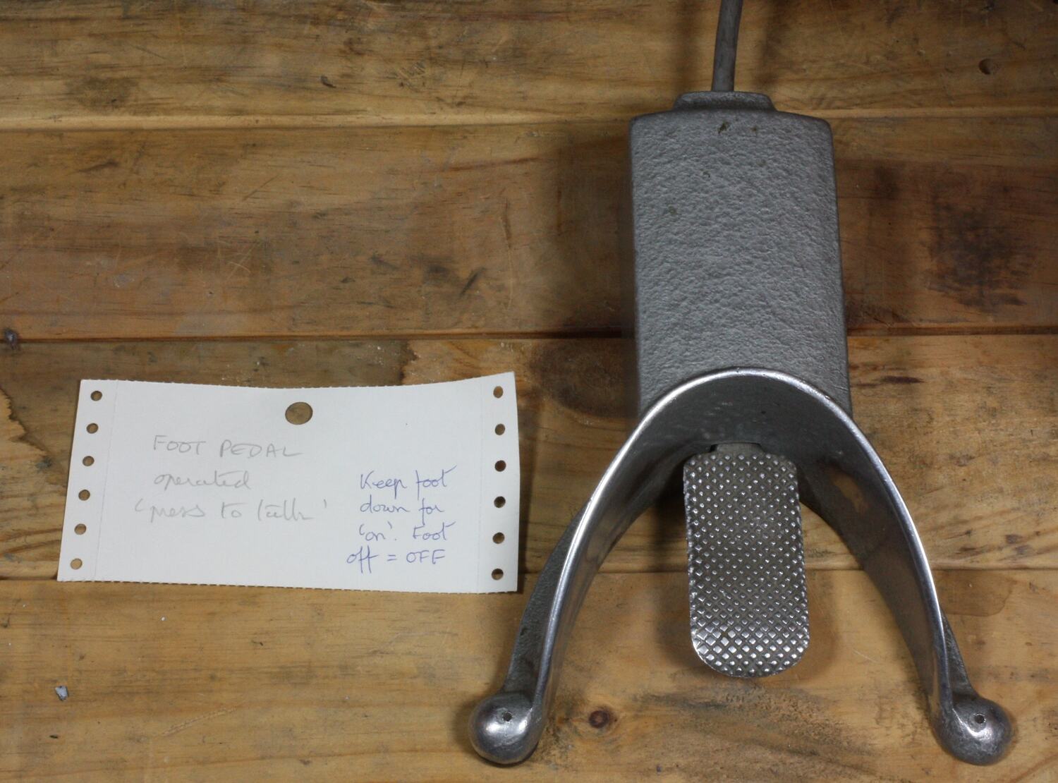 Metal foot pedal used in conjunction with Main Operator Console, no known manufacturer.