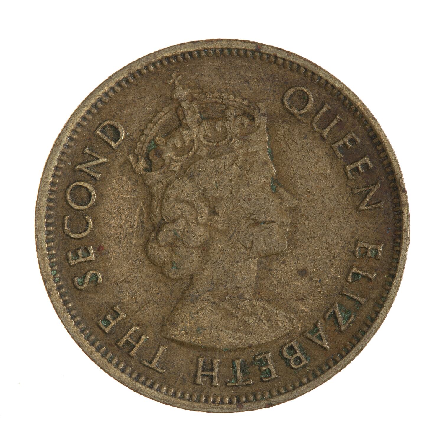 Crowned bust of the Queen facing right; around, QUEEN ELIZABETH THE SECOND