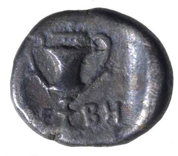 A silver obol coin issued by the town of Thebes in Boeotia, 480-456 BC