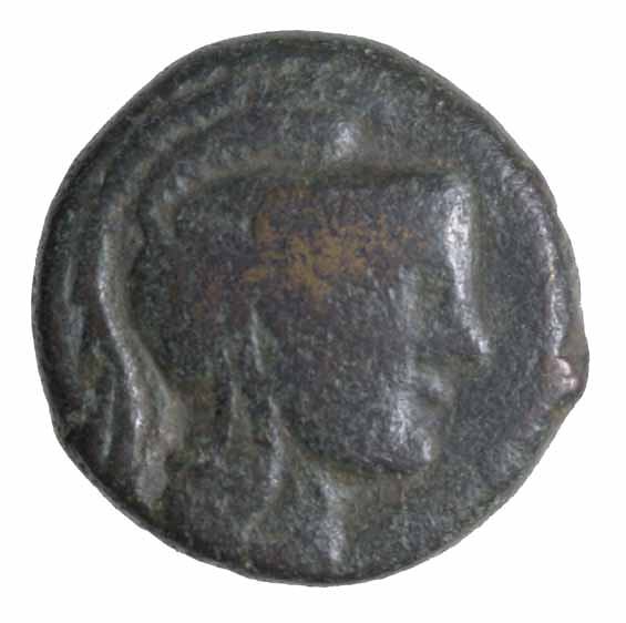 A copper coin issued by the city of Athens in Attica in the period 220 - 83 BC. Minted by Athens. The sphinx is the traditional Greek female form.