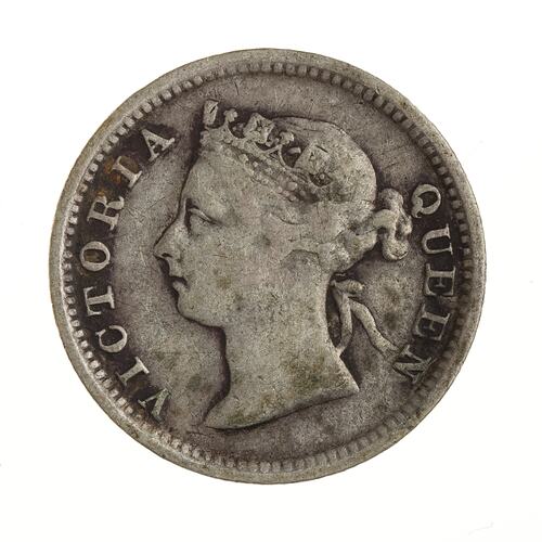 The 5 cents denomination was introduced in 1866 and struck at the Hong Kong mint until its closure in 1868. Thereafter the coins were struck in Britain, either at the Royal Mint, London or at Heaton & Sons, Birmingham.