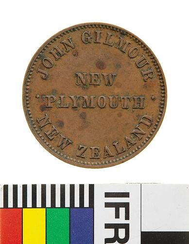 Obverse: JOHN GILMOUR NEW PLYMOUTH NEW ZEALAND