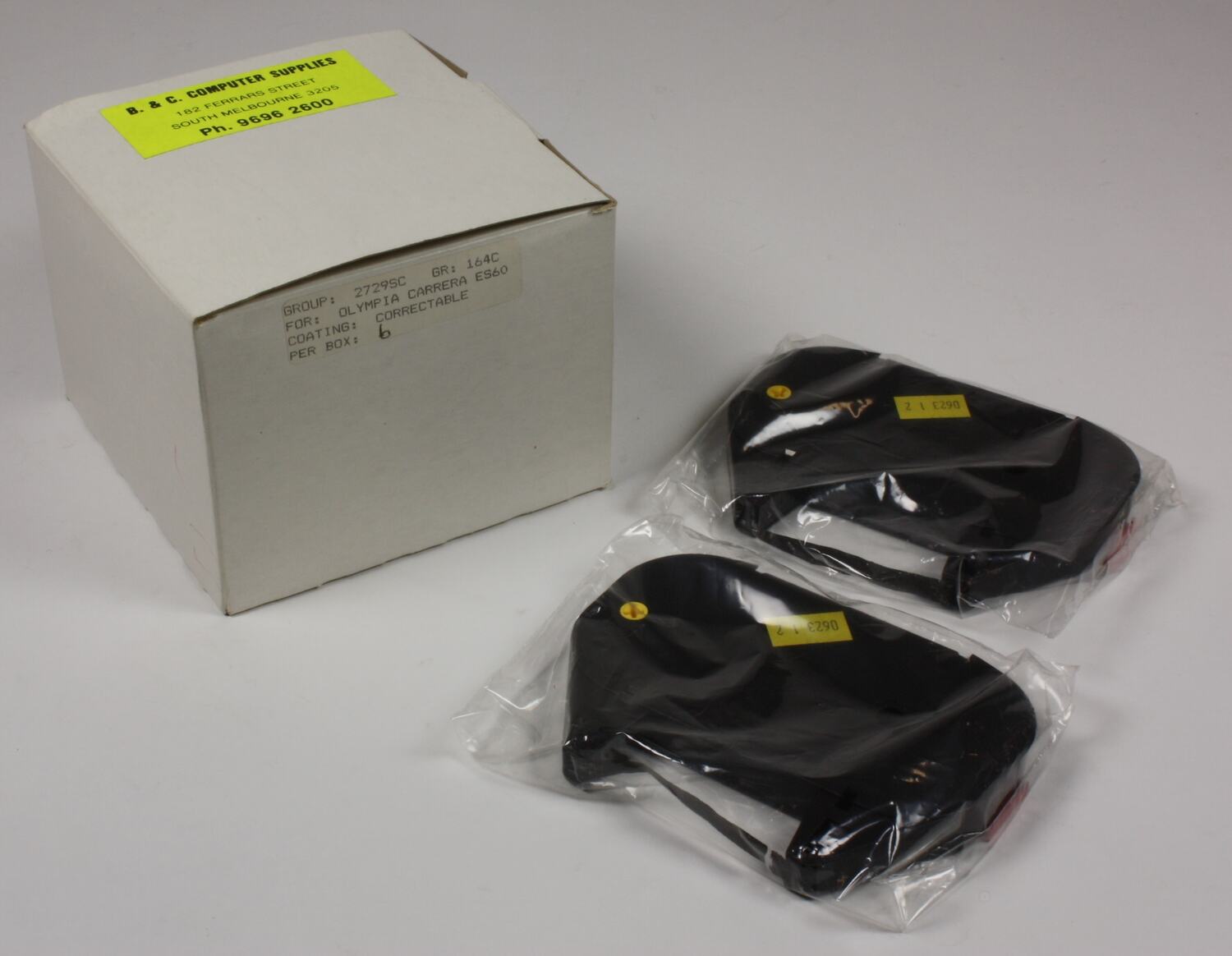 White label with grey text on left side of box: 'GROUP: 2729SC GR: 164C / FOR: OLYMPIA CARRERA ES60 / COATING: CORRECTABLE / PER BOX: 6' (the 6 was hand written onto the label) Bright yellow label with black text on lid of the box: 'B. & C. COMPUTER SUPPLIES / 182 FERRARS STREET / SOUTH MELBOURNE 3205 / PH. 9696 2600'