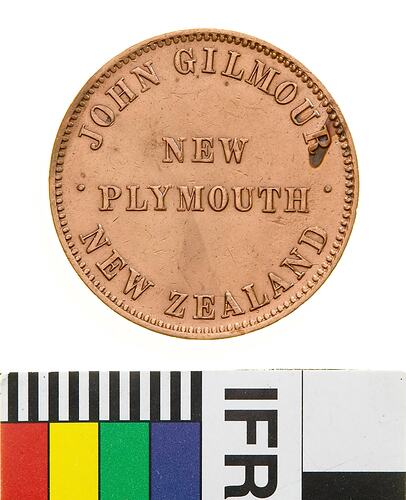 Obverse: JOHN GILMOUR NEW PLYMOUTH NEW ZEALAND
