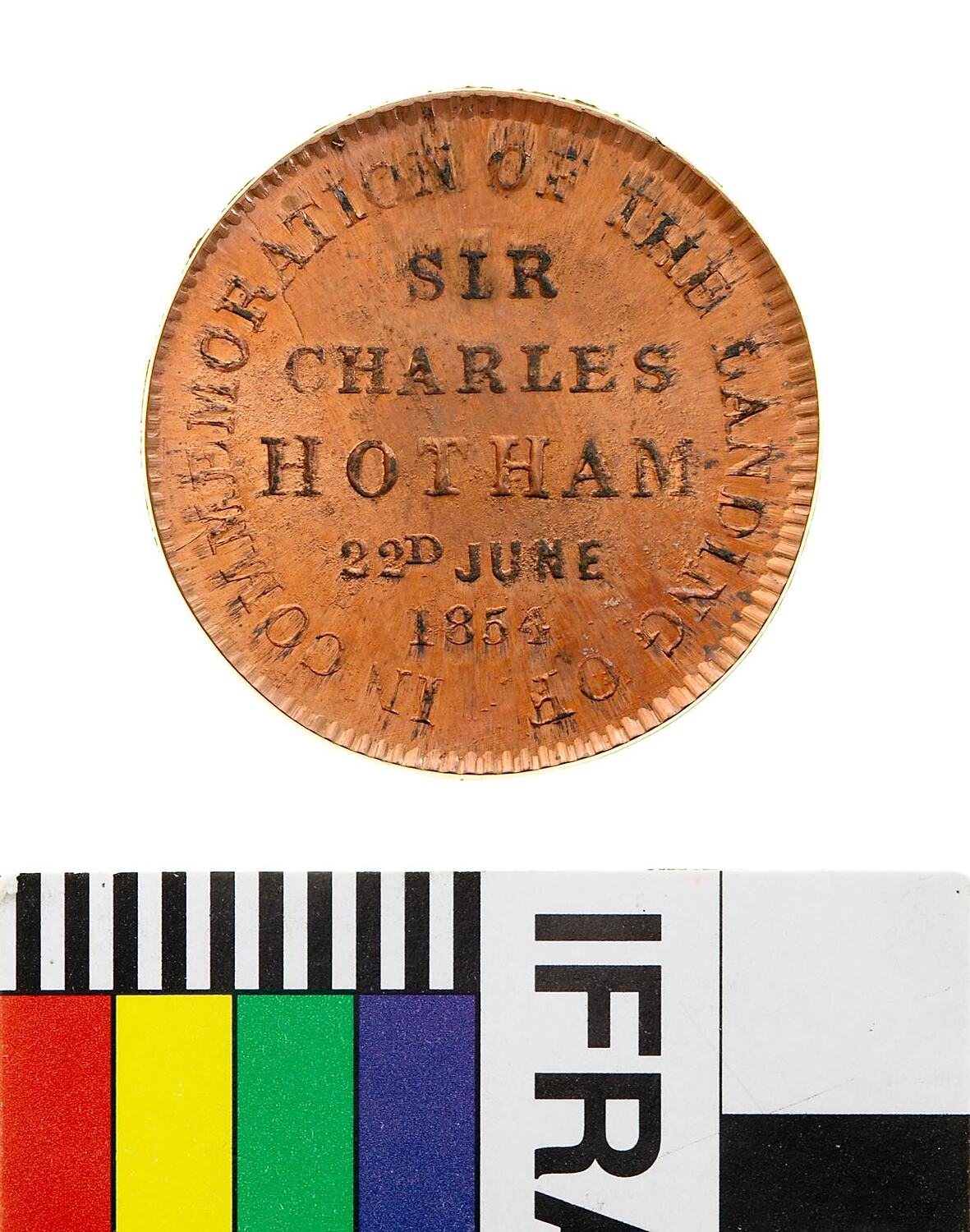 Obverse: IN COMMEMORATION OF THE LANDING OF SIR CHARLES HOTHAM 22ND JUNE 1854