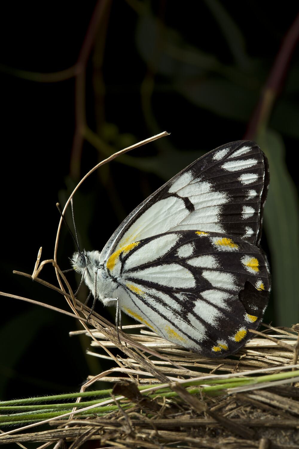 A mostly white and black butterfly that breeds north of Victoria and gets blown into the area by warm northerly winds.