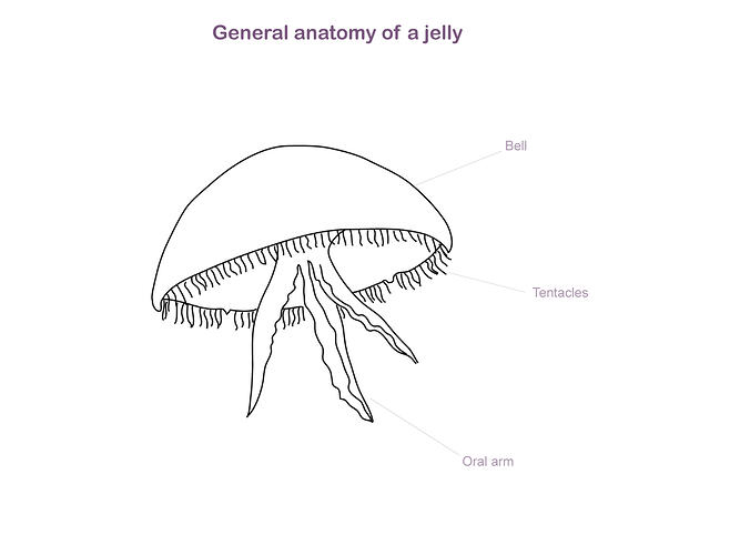 A jellyfish with a rounded box-like bell. Outside surface of bell has warts with stinging cells. On each of the lower four corners of the bell is one tentacle, coloured white, pink or purple. The bell is approximately 35 mm, but the total length including the tentacles can be up to 20 cm.