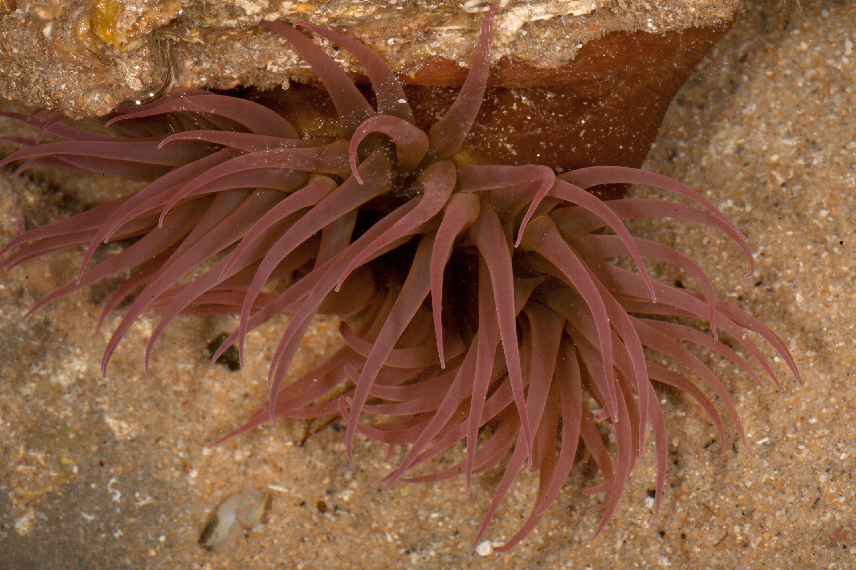Column usually green with numerous long, thin green tentacles. Colour variations recorded include red or an olive green column with red or grey tentacles. Column up to 5 cm wide.