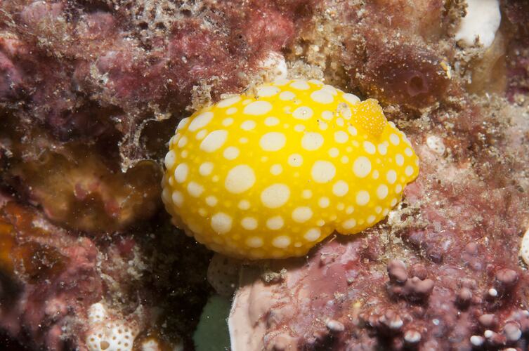 This vibrant species is from a group of nudibranchs (Dorididae) that has many species world-wide, including some more than 20 cm in length.