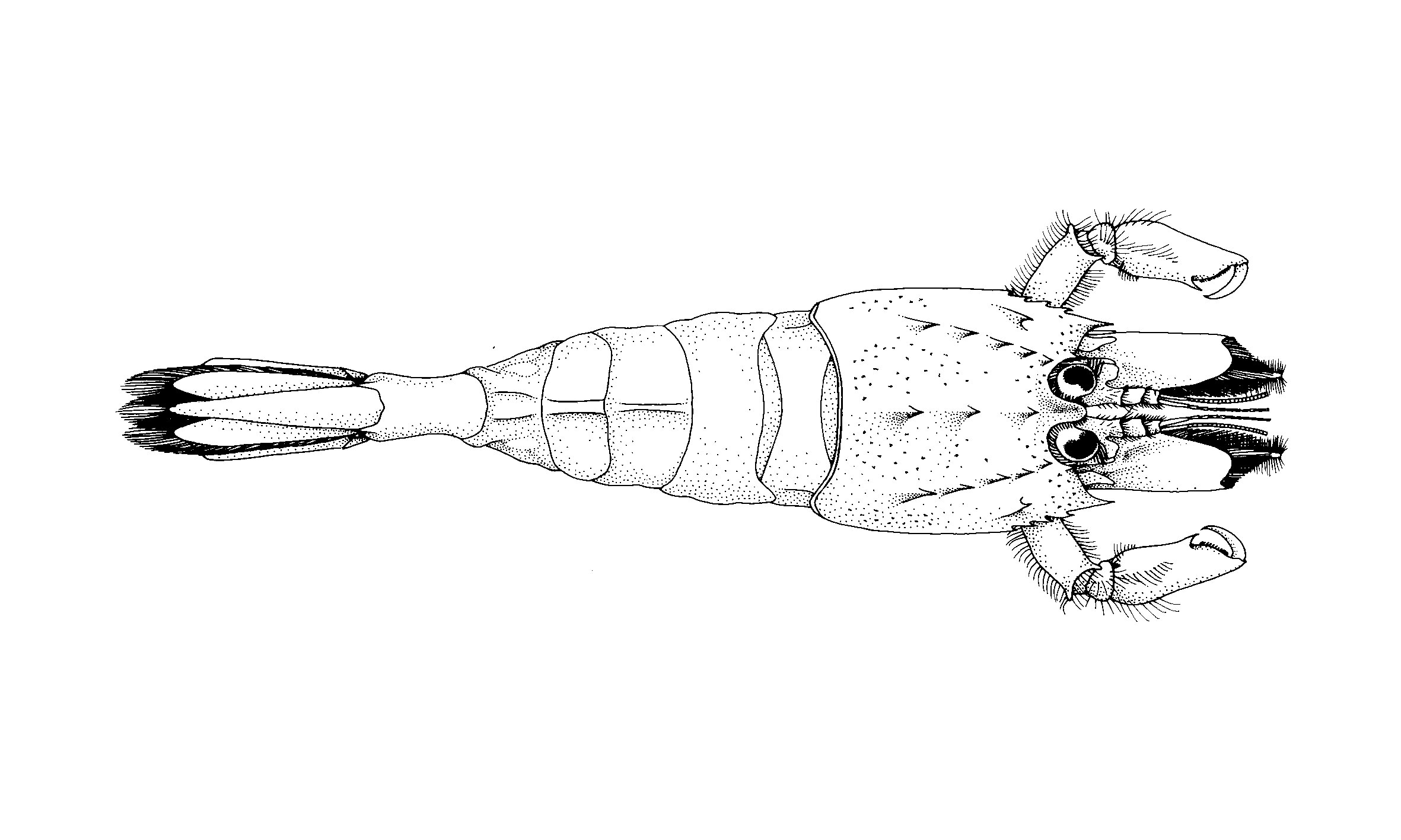 Subchelate first legs, second legs much shorter than other legs. Carapace with 3 mid-dorsal teeth including epigastric tooth.