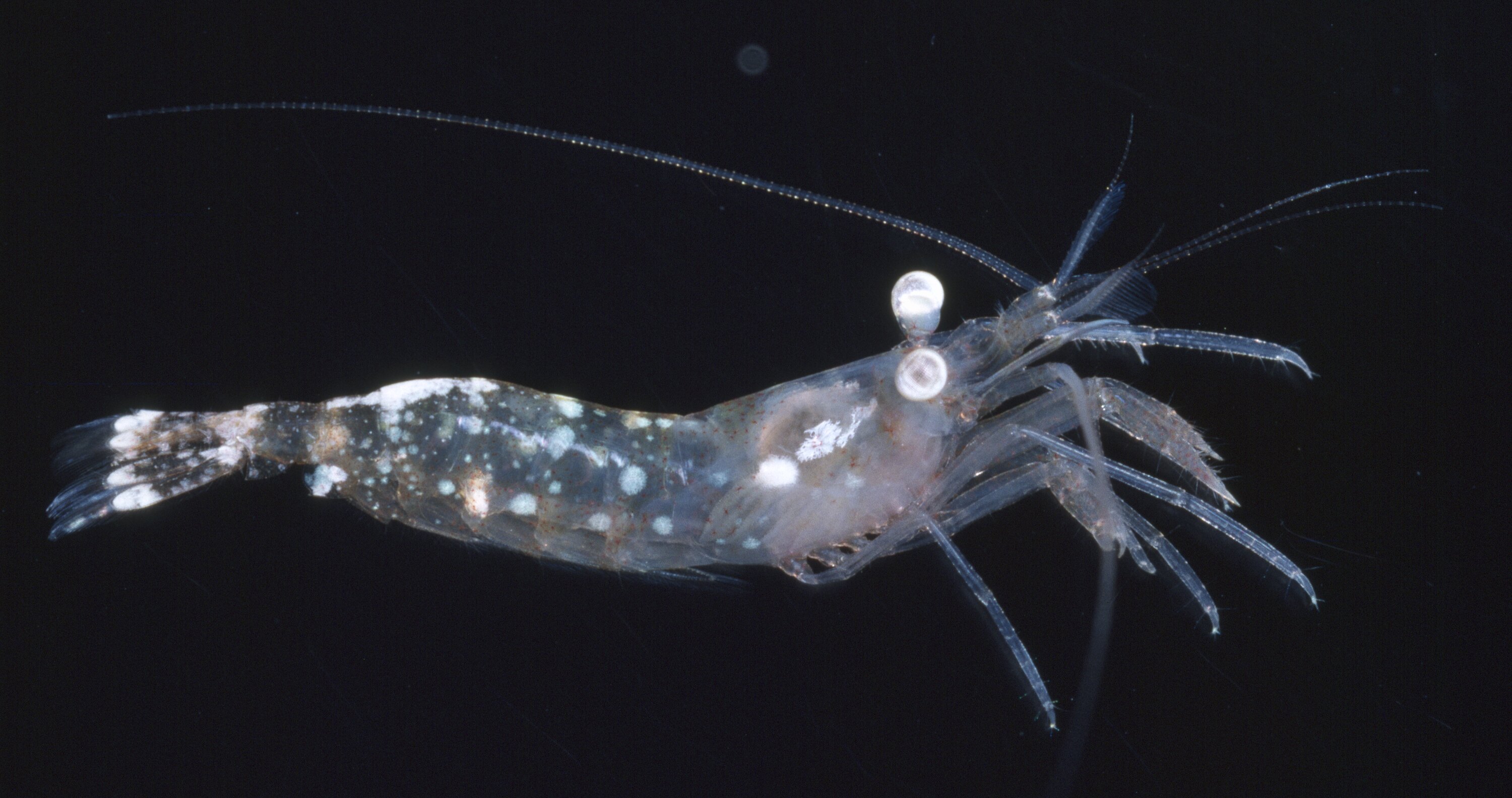 The Odd-footed shrimp can be reliably recognised by the asymmetry of the first legs, clawed on the right and simple on the left.The family Processidae, to which this species belongs, are small nocturnal shrimp found in seagrass environments.