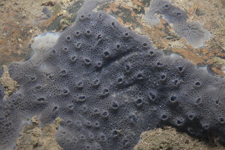 Encrusting sponge.Typically grey. Size can vary from small patches under a centimetre across to patches over 10 cm in diameter.