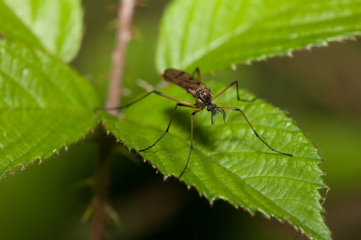 Craneflies breed in rotting organic matter. Adults fly to the surrounding vegetation. They are often seen sitting or hanging upside down from leaves or branches.
