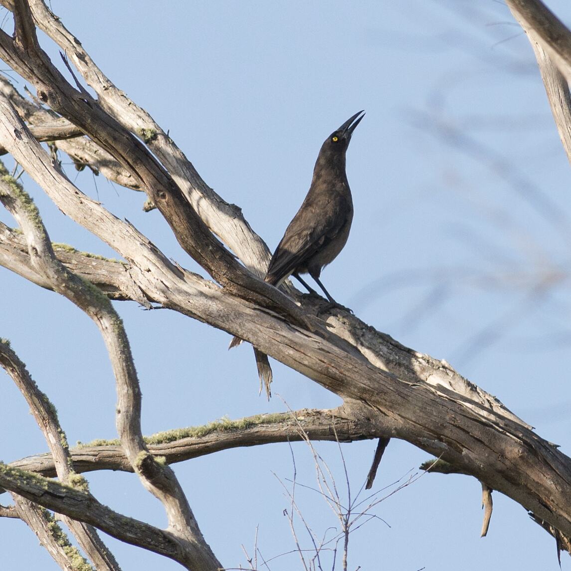 Grey Currawong are usually seen singly or in small groups. When standing on the ground, it stands proudly, very erect, with head and bill held high. It eats insects, small lizards and rodents and other small birds, as well as fruit. It forages opportunistically in groups, mainly on the ground, trunks or branches, but also in trees and shrubs. Can be confused with other currawongs but only Grey Currawongs are found in most of South Australia apart from the far south-east corner, where its distribution overlaps with the Pied Currawong. Two subspecies of the Grey Currawong are found in the lower south-east of South Australia and Kangaroo Island. They are darker and sooty black, while those found in the western parts of the state have white patches on their wings.
