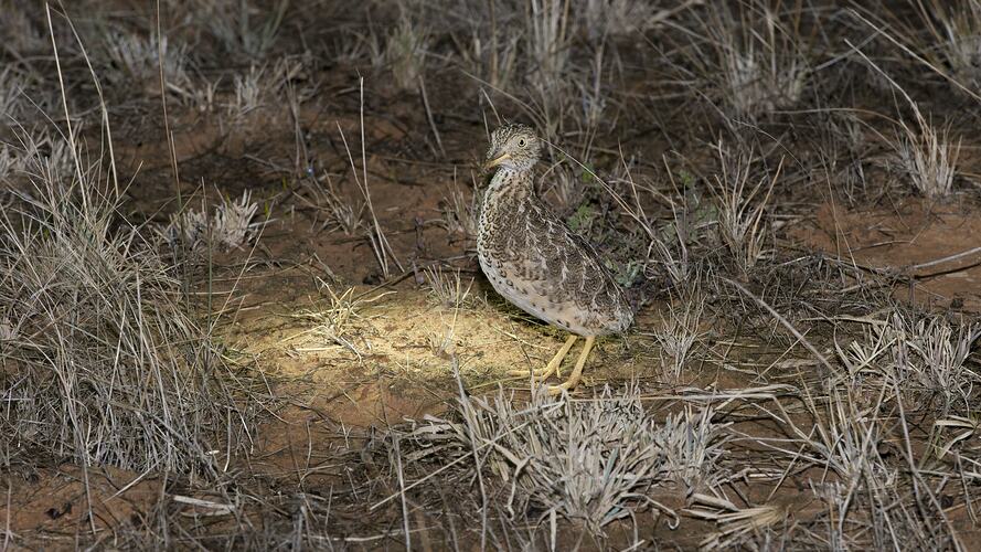 Occasionally called the 'goldilocks' bird because of their need for grassland habitats with the right mix of soil types and vegetation structure. Males care for the young on their own. Females make distinctive 'oom' calls by inflating their necks and blowing air out their nostrils.