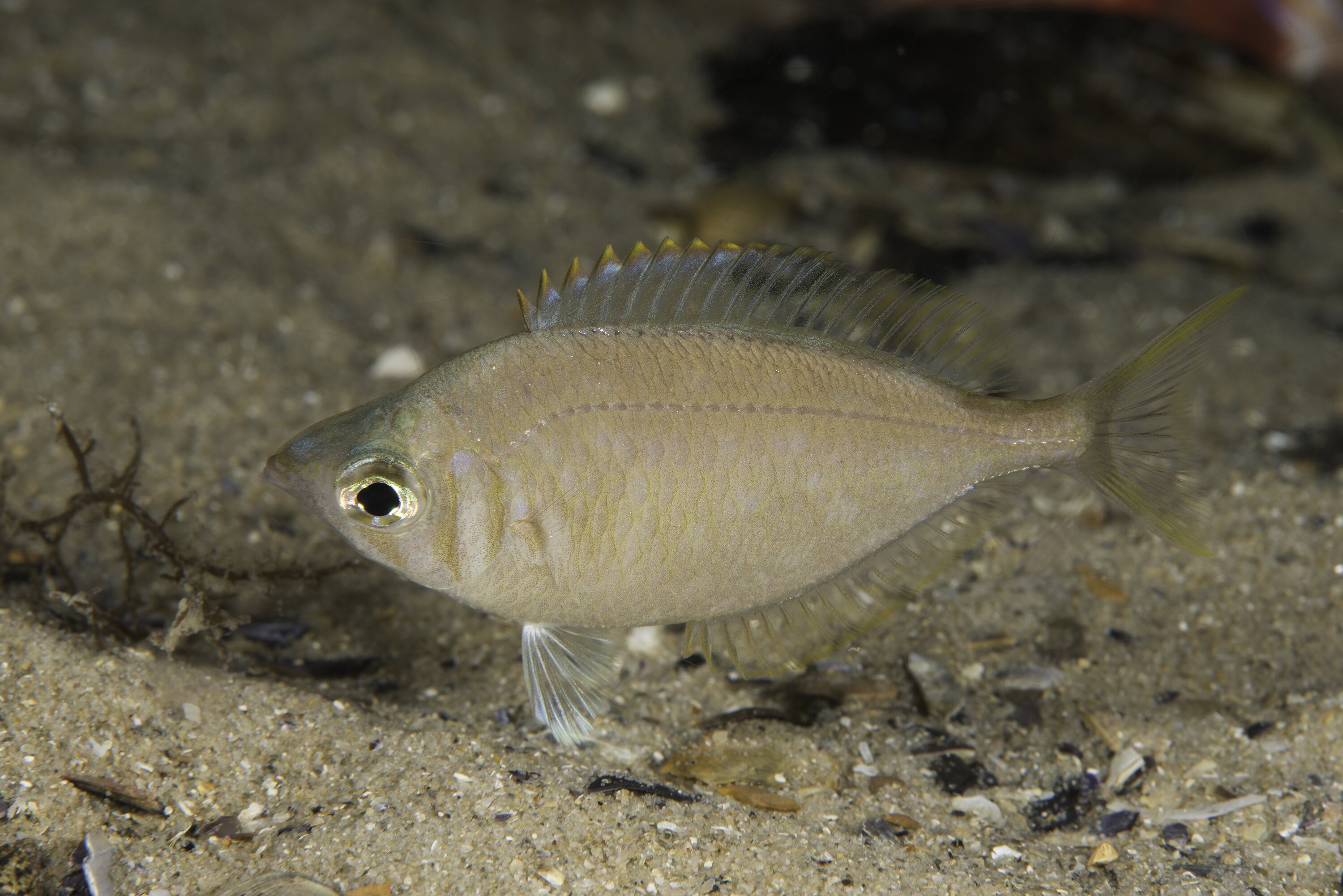 The Silverbelly is a schooling species found in near rocky reefs and seagrass beds in bays, and coastal areas. The Silverbelly uses its protrusible mouth to poke around for invertebrates on sandy and muddy bottoms.