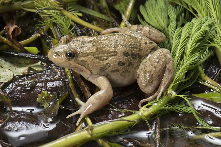 Marsh Frogs use a variety of shelters including floating vegetation, logs, leaf litter, crevices in the ground, and even yabby burrows.