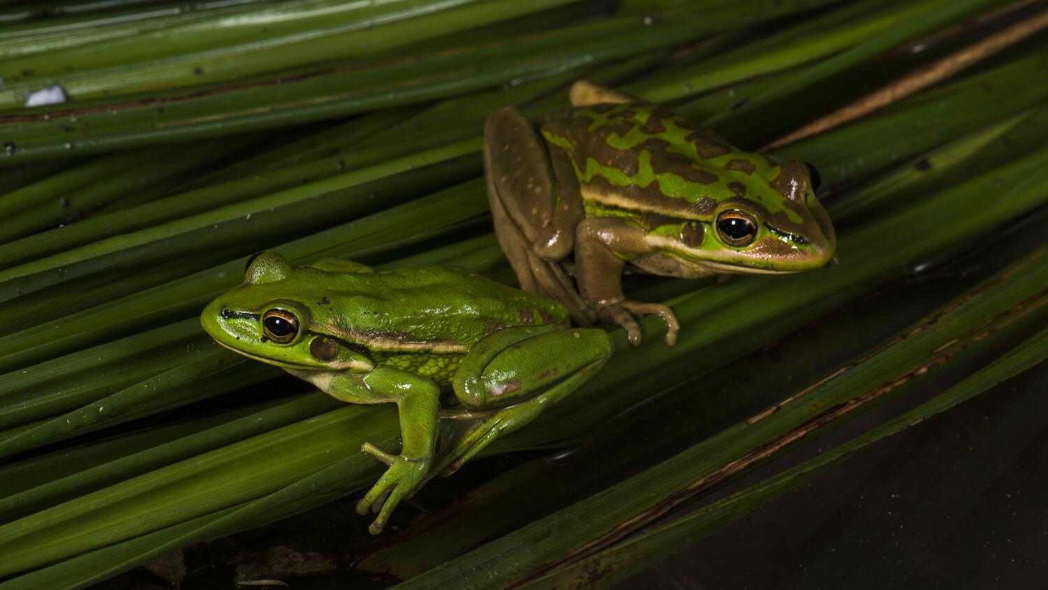 Green and Golden Bell Frogs are cannibalistic, eating other frogs. Individuals shelter in vegetation, but will move about during the day and often bask during the day. Peak calling occurs from November to January. They also start calling on cloudy, humid days. Sadly, this species has suffered severe population declines in recent years, most noticeably in New South Wales.
