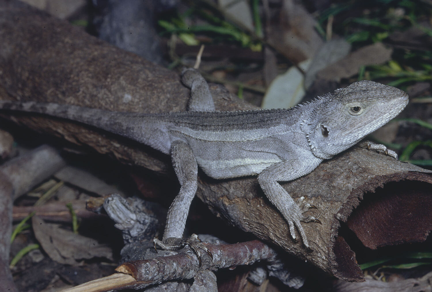 Nobbi Dragons move quickly across the ground, stopping to perch on fallen logs and tree trunks. They run on their hind legs when threatened. They are a sit and wait predator, feeding mainly on insects.