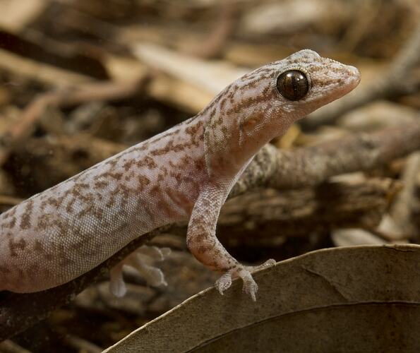Marbled Geckos are an arboreal species and hides under the bark of trees, fallen timber or logs during the day. At night they are often seen around external lights where they hunt insects attracted to the light. Marbled Geckos mate in late summer to early autumn. The females retain sperm over winter until fertilisation, which occurs in the late spring to early summer. They produce one clutch annually, containing two eggs. Marbled Geckos are common in Melbourne, but may have moved here after white settlement due to the transport of granite rocks from its natural habitats.