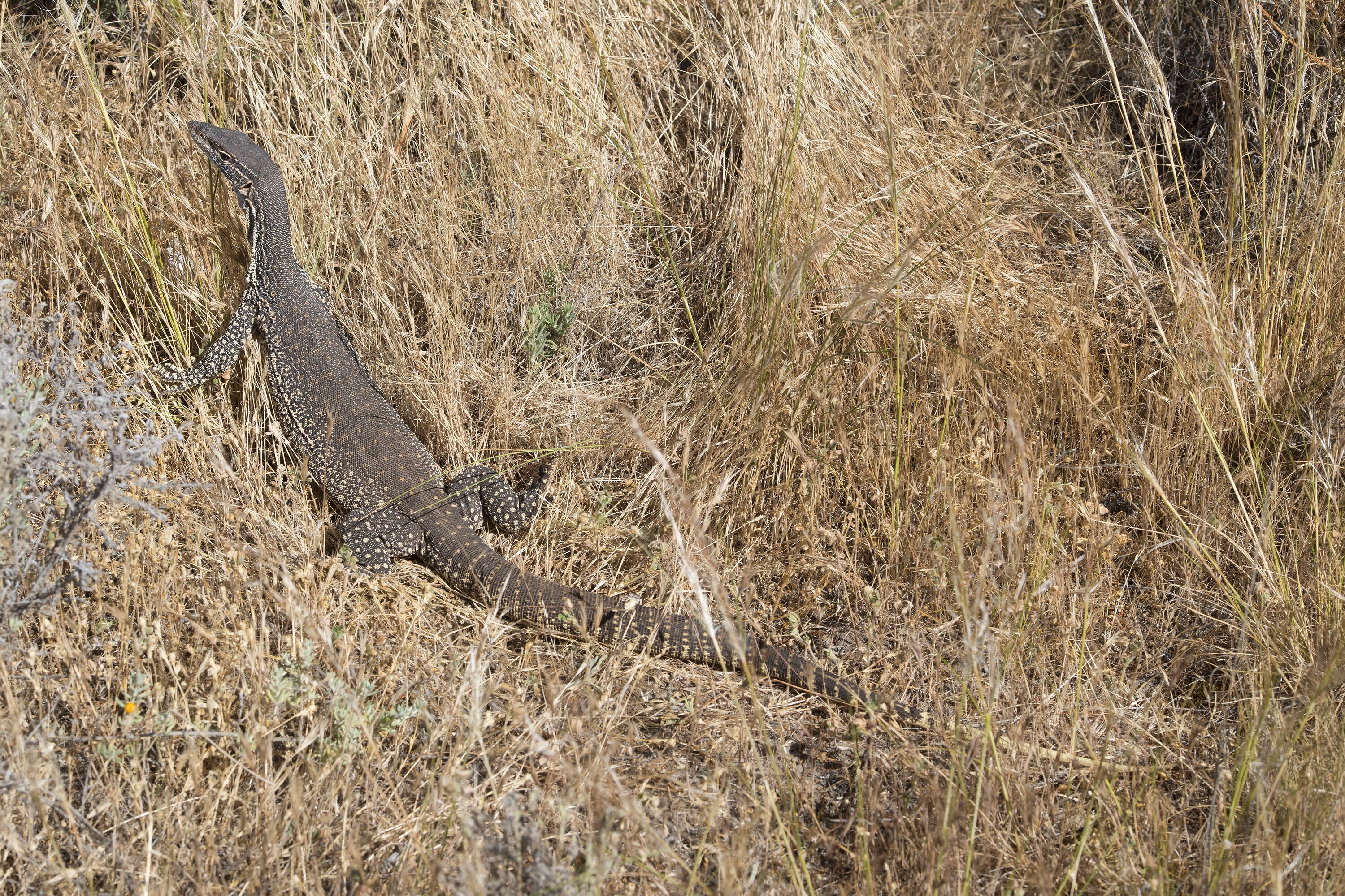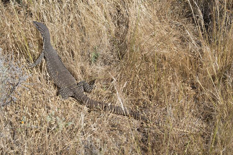 Sand Goannas move on the ground and hunt insects, other lizards, mice and snakes. They dig shallow burrows for shelter.