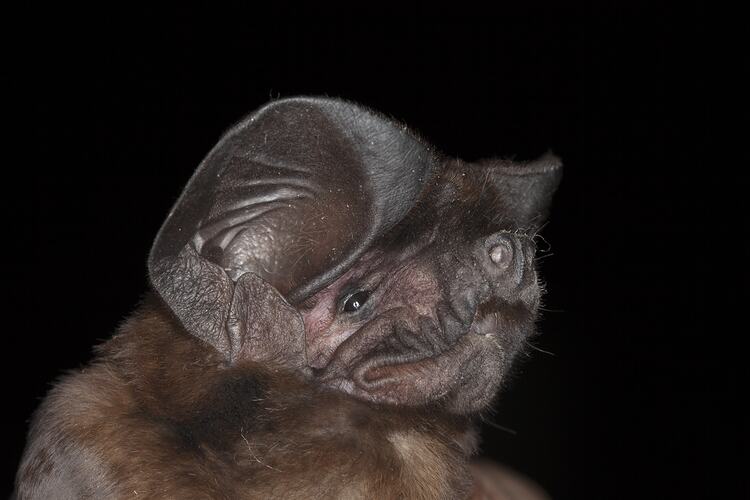 The White-Striped Free-tail Bat is one of Australia's most common bats. They are one of the few bat species that produce echolocation sounds that can be heard by humans. Though rarely seen, except flying quickly overhead, their echolocation calls are one of the most common sounds of the night.