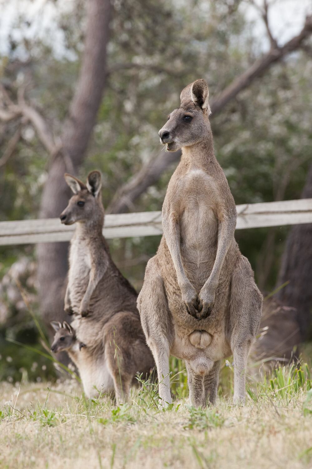 A kangaroo commonly seen in groups in open areas especially around dawn and dusk. Distinguished by its large size and light grey fur.