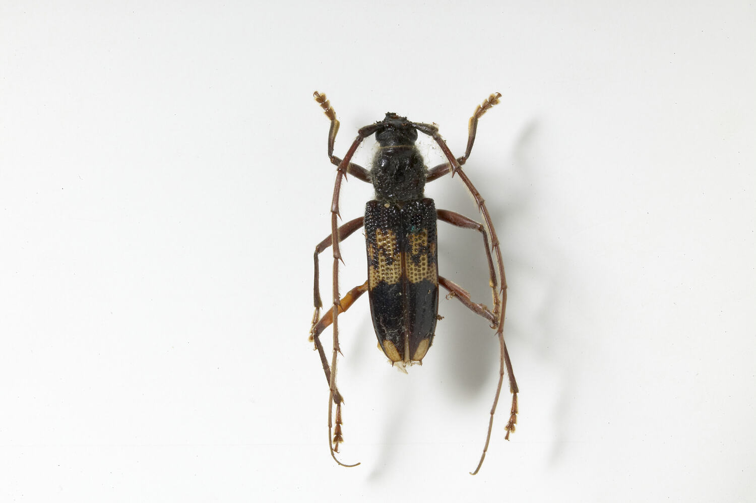 Dark brown elytra with yellow markings.