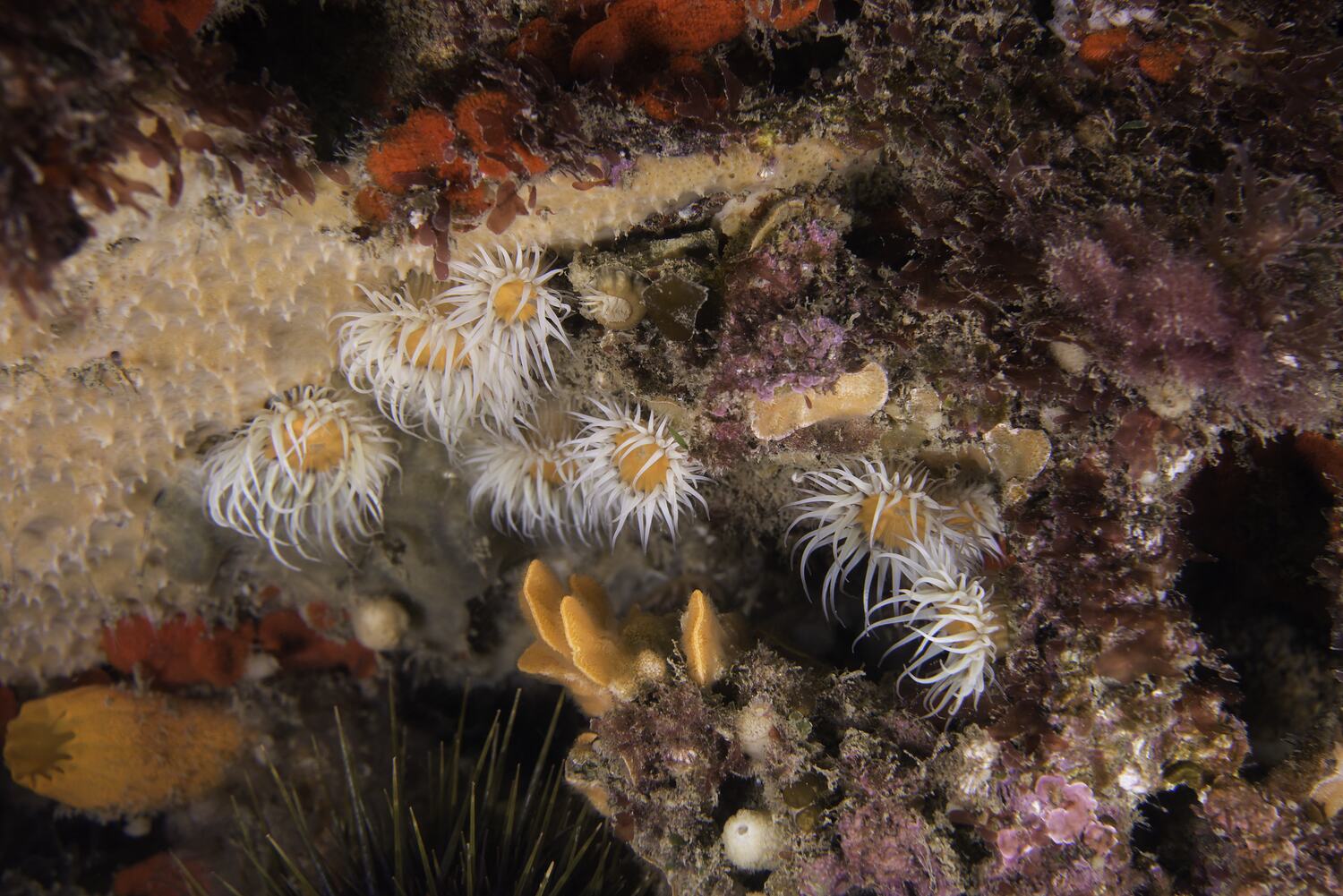 Orange and White Stripe Anemones cast off thin threads (acontia) from small openings (cinclides) in the column and/or from the mouth as a defence mechanism. The threads contain stinging capsules (nematocysts), which can sting other animals.