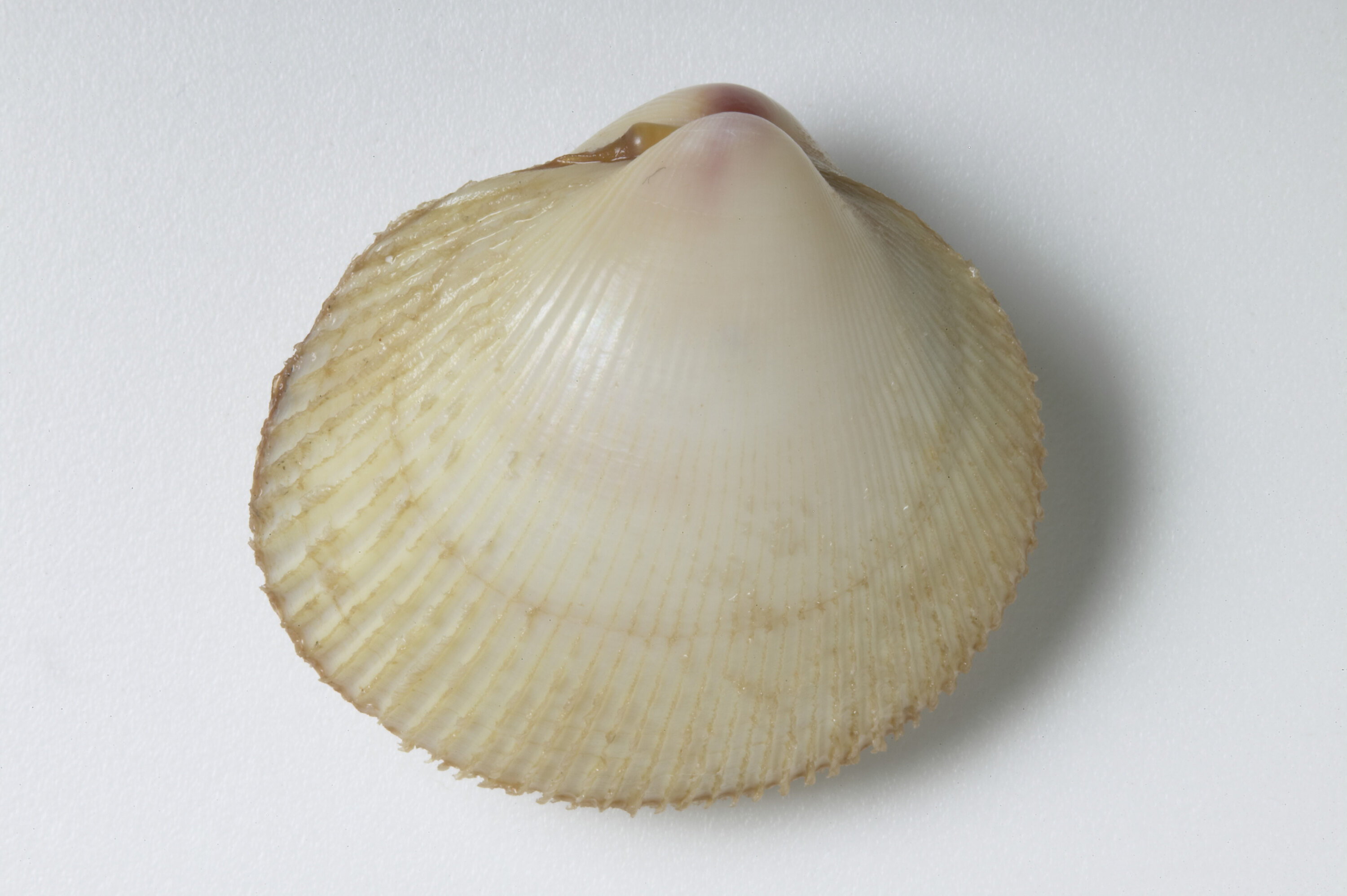 Cream-white shell, over 50 wide radial ridges.