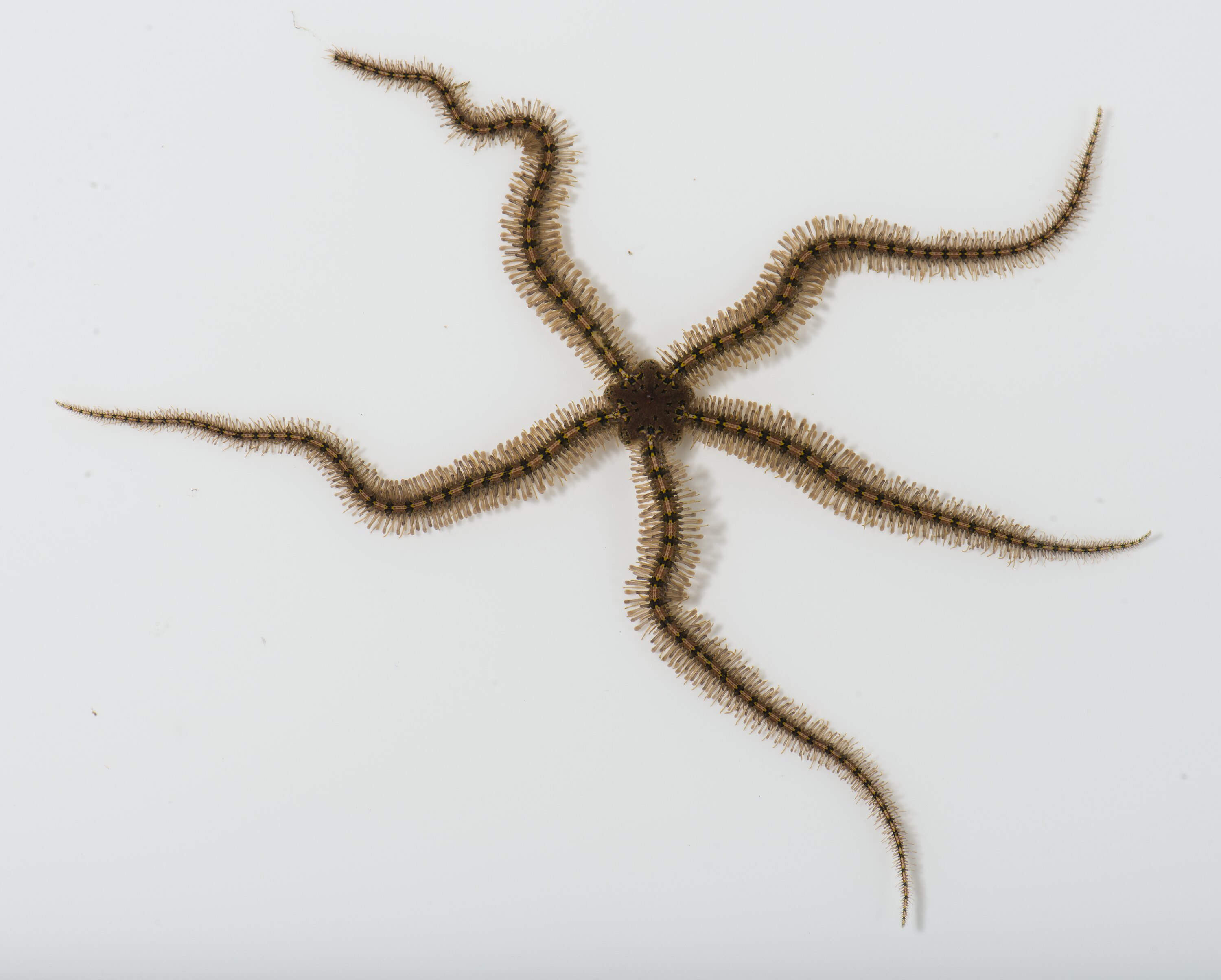 Banded Brittle Stars can drop off the ends of their arms, like lizards drop off their tails. These arm pieces have a green luminescent glow, thought to act as a decoy for predators to follow at night. They are often associated with a scale worm that mimics the colour of the brittle star.