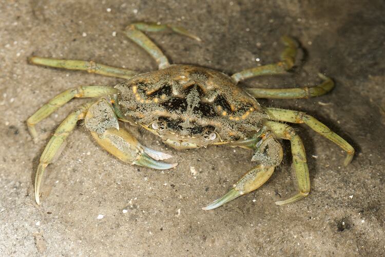 European Shore Crabs were first recorded in Port Phillip in 1900, introduced there accidentally as a hitch-hiker on ships from the UK or Europe. They have since spread throughout coastal Victoria, eastern South Australia and northern Tasmania. The crab is very aggressive, with strong pincers (chelipeds). It competes with and feeds on native species and may be a threat to these species. To prevent the spread of this invasive crab, recreational anglers must not use European Green Shore Crabs as live bait or return live unused crabs to the water.