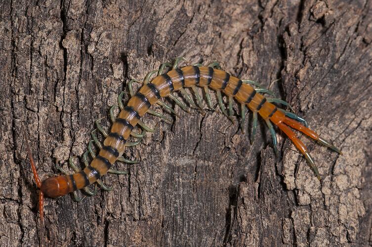 These centipedes are fast-moving predators, feeding on other invertebrates and, occasionally, small frogs and lizards. They grasp prey with their last pair of legs and immobilise it by biting.