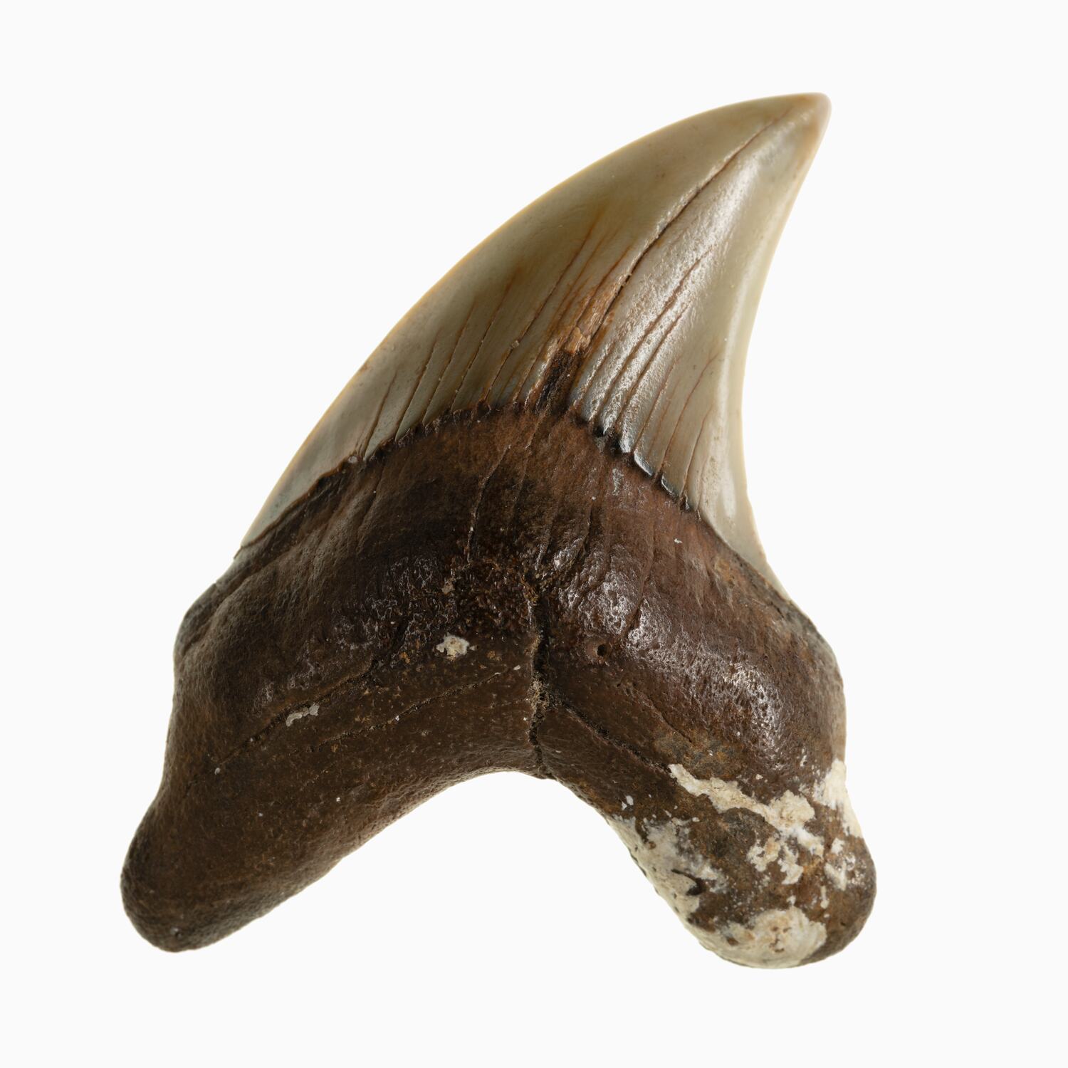 This fossil tooth from Beaumaris belonged to one of the most mysterious species of extinct sharks, Parotodus benedenii. Fossil teeth of this shark have been found worldwide, but they are only rarely discovered compared with teeth of other sharks. The size of the teeth of Parotodus indicate that adults could have reached the same length as the living white shark Carcharodon carcharias, or even longer (about 7 metres).