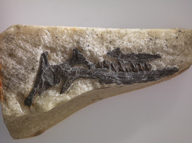 Leaellynasaura amicagraphica was one of eight fossils nominated to become Victoria's state fossil emblem in 2021. It is a small ornithischian dinosaur from the Early Cretaceous rocks at Dinosaur Cove on Cape Otway, Victoria. It was excavated by tunnelling into the sandstone cliffs using explosives.
