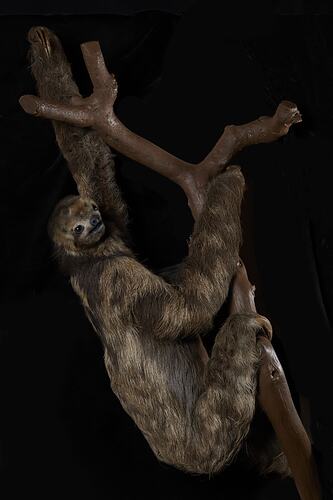 The Northern Maned Three-toed Sloth occurs only in the Atlantic coastal forests of eastern Brazil. It is an arboreal (tree-dwelling) species that lives in wet tropical forests. It feeds on foliage and is highly selective about what species of plant it will eat. Individuals spend most of their time in the tree canopy but descend to the forest floor to urinate and defecate.