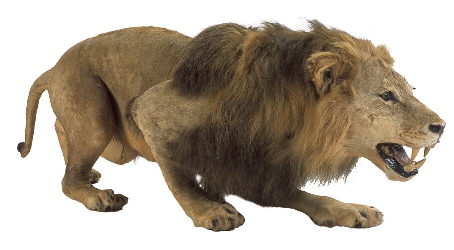 Though we may think of lions as iconic African species, historically they also inhabited much of southwest Asia and northern India. Today, a small wild population of this Asiatic subspecies survives in Gujarat, India. They can be distinguished from their African relatives by their sparser mane and larger tail tuft.