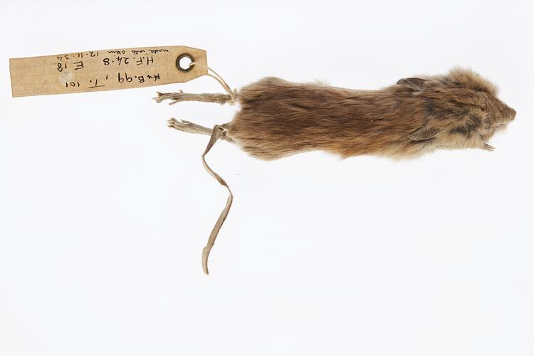 In 1857, this specimen was thought to be the last Gould's Mouse, a species presumed extinct. In 2021, scientists from the Museums Victoria Research Institute extracted genetic information from this specimen and confirmed that native mice on an island off Western Australia belong to this same species, showing that Gould's Mouse is not extinct. However, this small remaining population has low genetic diversity.