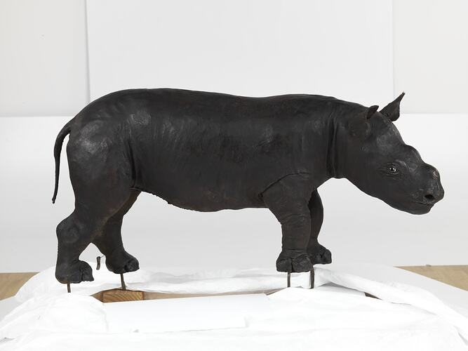 Black Rhinoceros are one of one of five living species of rhinoceros found in Africa and Southern Asia. This juvenile specimen was bought in 1878 for eight pounds from E Gerrard Jnr of Edward Gerrard & Sons, a father and son taxidermy business based in Camden Town, London. It originally came from South Africa.