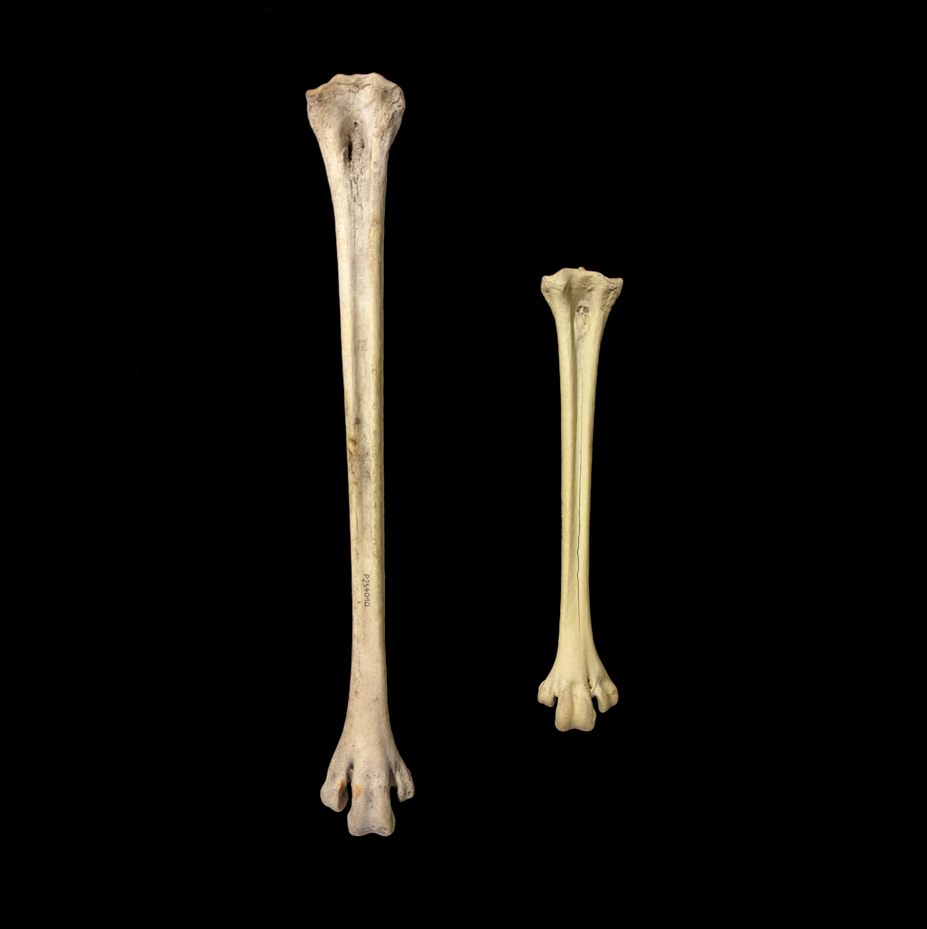 The King Island Emu was a dwarf emu subspecies found only on King Island, in the Bass Strait. Their small size likely evolved as an adaptation to reduced availability of resources when King Island was cut off from populations on Tasmania and the mainland by sea level rise during the Late Quaternary. European colonists had hunted them to extinction by the early nineteenth century. Today they are known from fossils like these, and skeletons in European museums from a handful of individuals that were collected live in 1804 and sent to France. Two of these live emus were kept captive in the menagerie of Empress Josephine, and were likely the endlings of their kind, before their deaths in 1822.