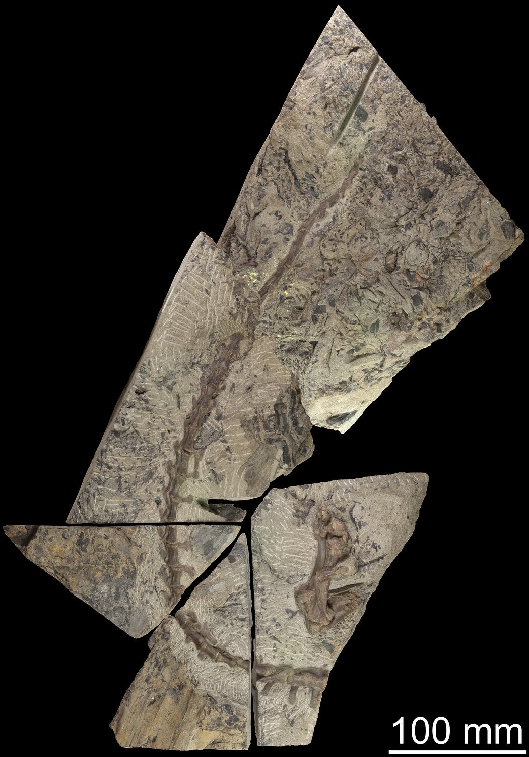 A partial skeleton of a species of turkey-sized dinosaur from southeastern Australia. It was found in 2005 in rocks that date to 113 million years old. The tail and footbones can be seen in the fossil and studying these gives scientists more insight into the diversity of small, bipedal herbivorous dinosaurs that once roamed between Australia and Antarctica.