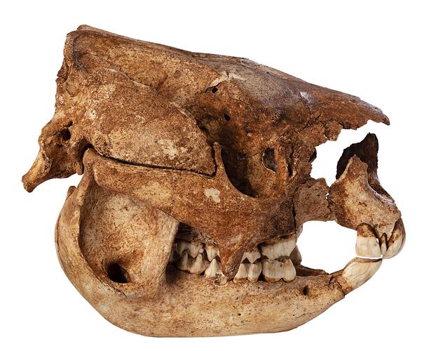 Simosthenurus occidentalis was a short-faced kangaroo that lived during the Pleistocene Epoch in Australia. This fossil skeleton is one of the most complete examples of the species ever found. It was retrieved from deep underground in a cave north of Buchan, East Gippsland. The retrieval took place over two years, and was carried out by a Museums Victoria-led team including recreational cavers and Parks Victoria rangers.