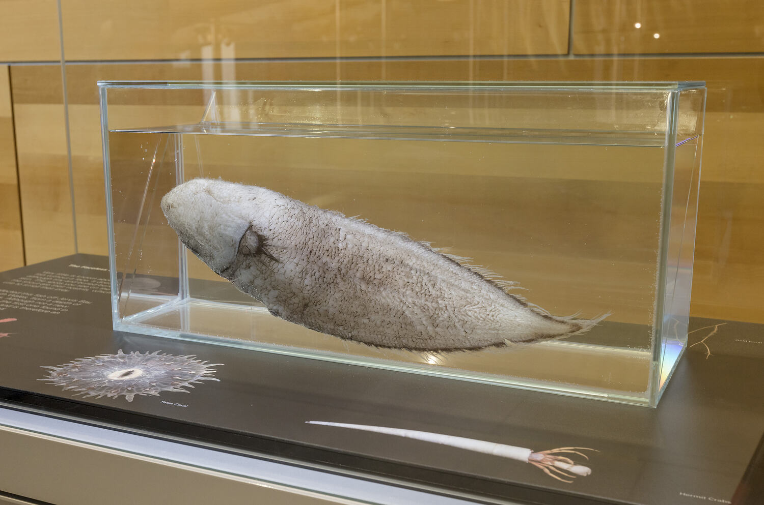 Little is known about this strange fish "without a face", however it does have eyes buried deep within the skin. Although rare, the species is quite widely distributed, and has been recorded from the Arabian Sea, Indonesia, Papua New Guinea, Japan and Hawaii at depths between 4000-5000 metres.