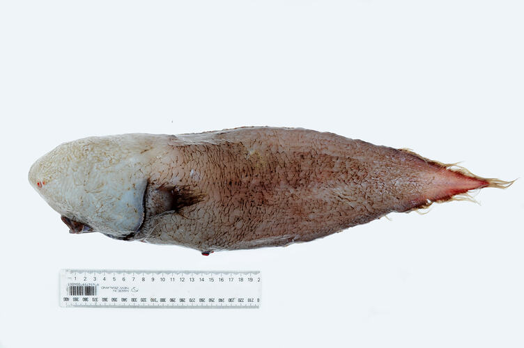 Little is known about this strange fish "without a face", however it does have eyes buried deep within the skin. Although rare, the species is quite widely distributed, and has been recorded from the Arabian Sea, Indonesia, Papua New Guinea, Japan and Hawaii at depths between 4000-5000 metres.