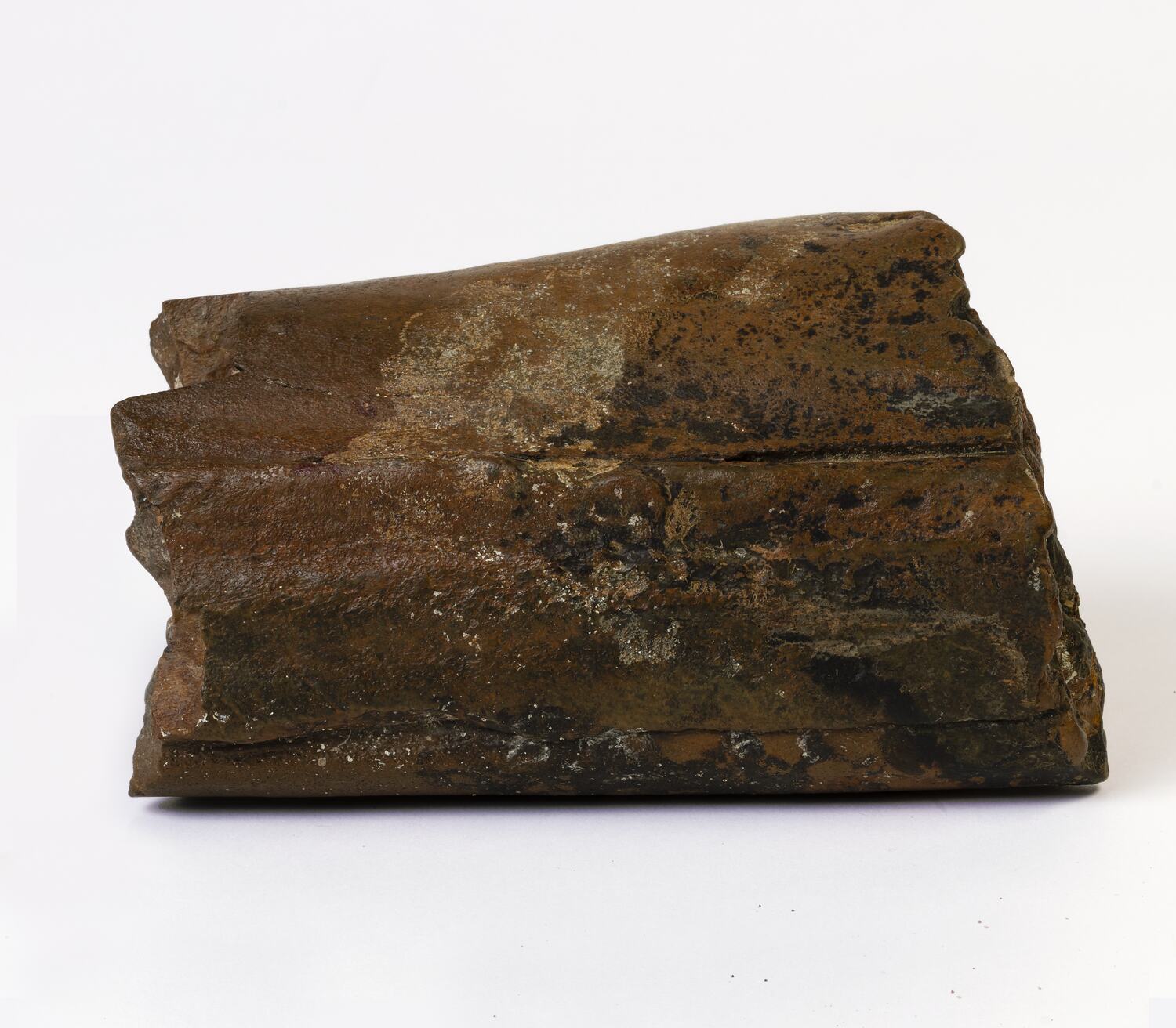 The three individual fragments of this fossilised beaked whale rostrum (snout) were found at the same Bayside beach, many years apart. This was the second fragment found, and represents the middle part of the snout. It was discovered by Connah Brecon while diving at Beaumaris near Melbourne. It fit together perfectly with a piece from the tip of the snout found by Tim Flannery in 1977, and a later third fragment of the base of the snout that Connah found in 2021.