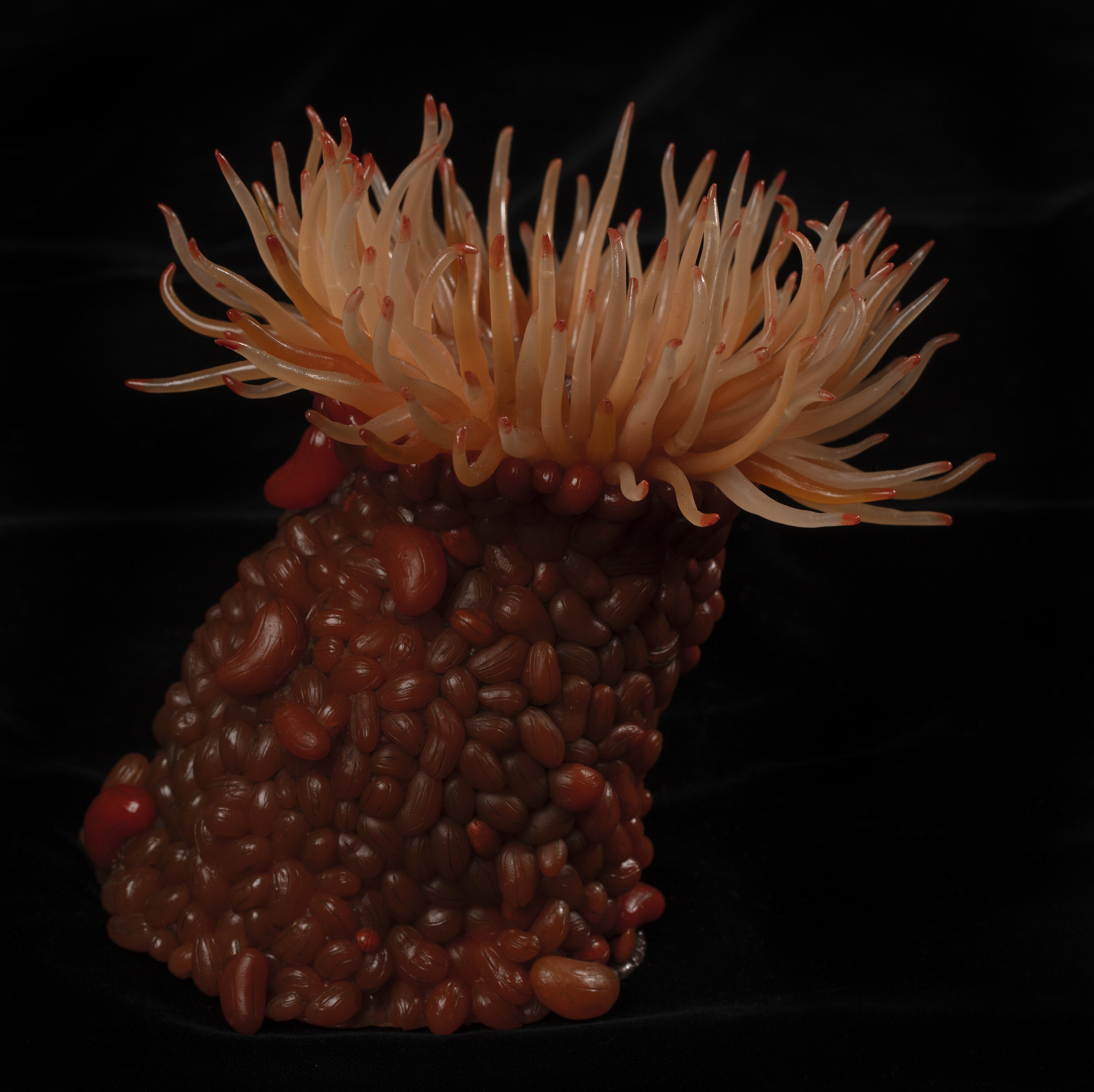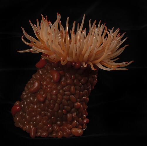 This model of a Swimming Anemone was made by the Museum's Preparators. Swimming Anemones don't actively swim, but rather use tidal or wave surges to tumble them around so they can find a spot to live.